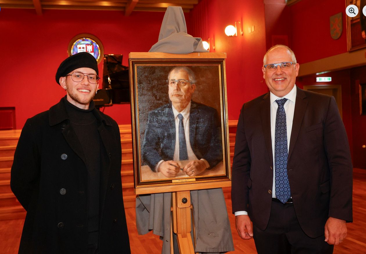 (LiVa, 06.03.2026) Enthüllung des Porträts von Alt-Bürgermeisterin Petra Miescher Im Rathaussaal wurde vorgestern das offizielle Porträt von Alt-Bürgermeisterin Petra Miescher enthüllt. Das Werk wurde von Künstlerin Jess de Zilva (r.) geschaffen und würdigt die Amtszeit der ersten Bürgermeisterin von Vaduz (Mai 2023 bis Mai 2024). Das Bild ziert nun zusammen mit 22 anderen Porträts von Alt-Bürgermeistern einen Seitengang des Rathaussaals. Bei der Präsentation war auch Bürgermeister Florian Meier (l.) zugegen.